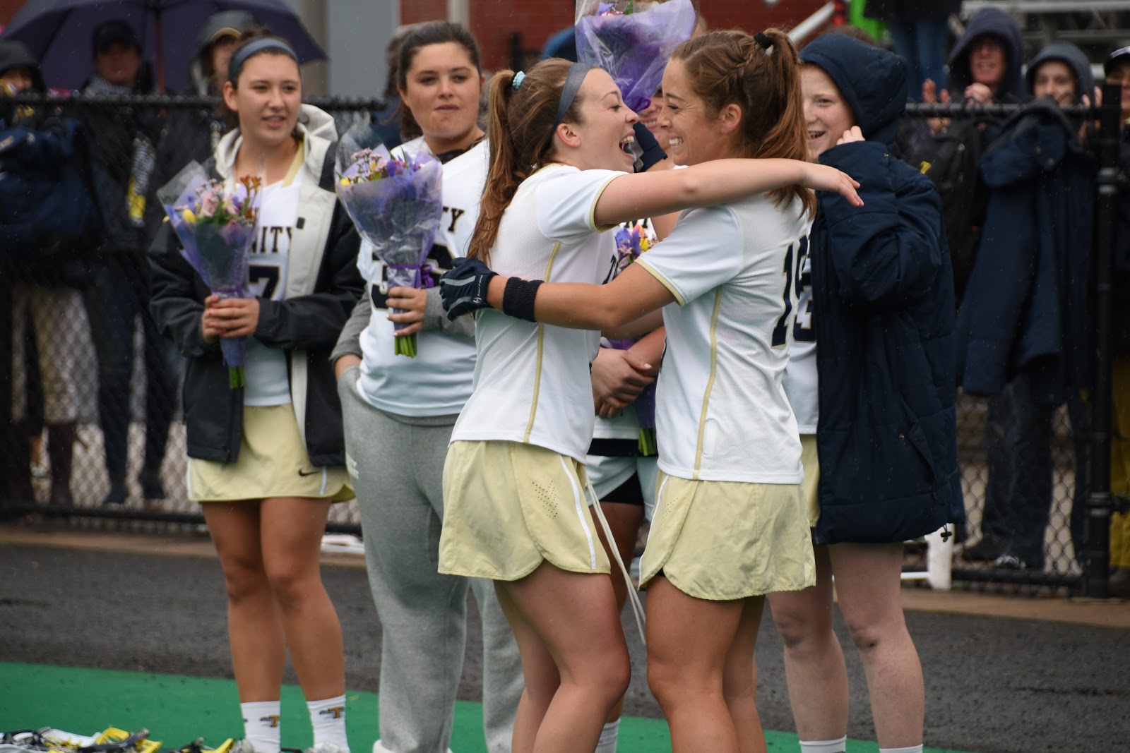 The Bantams took a tough loss against Hamilton, which was also our Senior Day game. We honored and celebrated the amazing career (which isn't over yet!) of our 9 amazing seniors before the game started - defenders #1 Lara Guida, #3 Katherine Foca, #12 Meghan Collins (tri-captain), #18 Kathryn DeLillio, midfielders #15 Karly Simpson (tri-captain), #21 Nicole Stauffer, and attackers #7 Emma Malicki, #10 Clio Kammerer, #22 Clare Lyne (tri-captain). This senior class has led the Trinity Bantams to an impressive overall record of 70 wins and 11 losses, they have won 2 NESCAC titles and have advanced to the NCAA Championship game each of the past three years. Not only have they succeeded on the field, but they have also achieved excellence in the classroom, helping the team achieve an impressive cumulative GPA of 3.56. They have been great leaders for our team and have helped to continue and further develop the incredible culture of Trinity Lacrosse. We're going to miss them next year, but their ride is far from over right now! Despite the loss today, they have unfinished business to take care of.